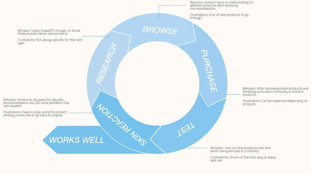 Choosing skincare or makeup is a frustrating cycle. Users start with broad, generic advice online, then get overwhelmed by endless product options. Even after buying, products often require confusing trial-and-error, and many lead to breakouts or irritation—forcing users to start over. Only a few products ever truly work. Our app cuts through this cycle by giving users personalized, skin‑matched recommendations from the start.